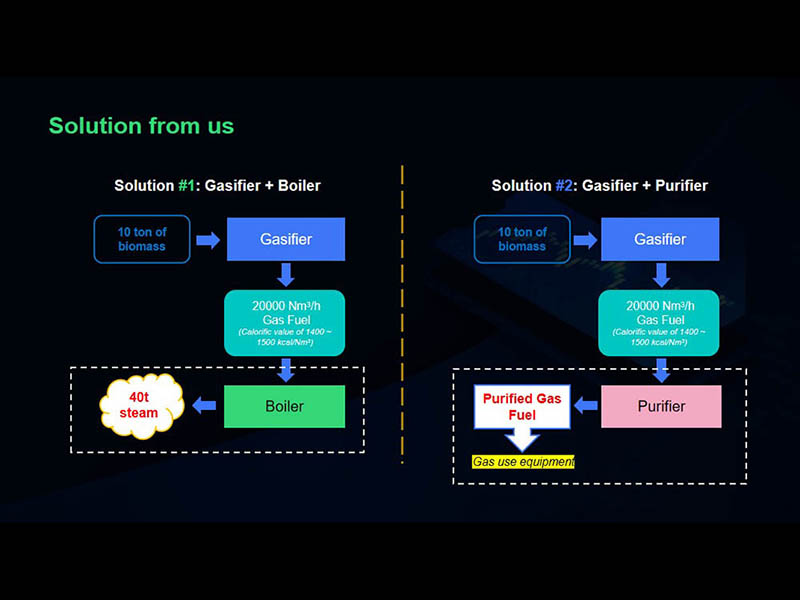 Se agrega combustible de biomasa al gasificador para la pirólisis instantánea a alta temperatura para producir gas de biomasa crudo y caliente, cuyos componentes principales son CO, H₂, CH₄ y pequeñas cantidades de gases de hidrocarburos. El gas de biomasa crudo y caliente ingresa a un colector de polvo ciclónico para eliminar grandes partículas de polvo del gas, lo que da como resultado un gas de biomasa limpio. Finalmente, después de la presurización, deshumidificación y desnitrificación, se utiliza un quemador de gas de biomasa con bajo contenido de nitrógeno para calentar una caldera de vapor. El sistema de control de la gasolinera adopta un sistema de control inteligente DCS o PLC, que permite la operación remota y la supervisión centralizada.