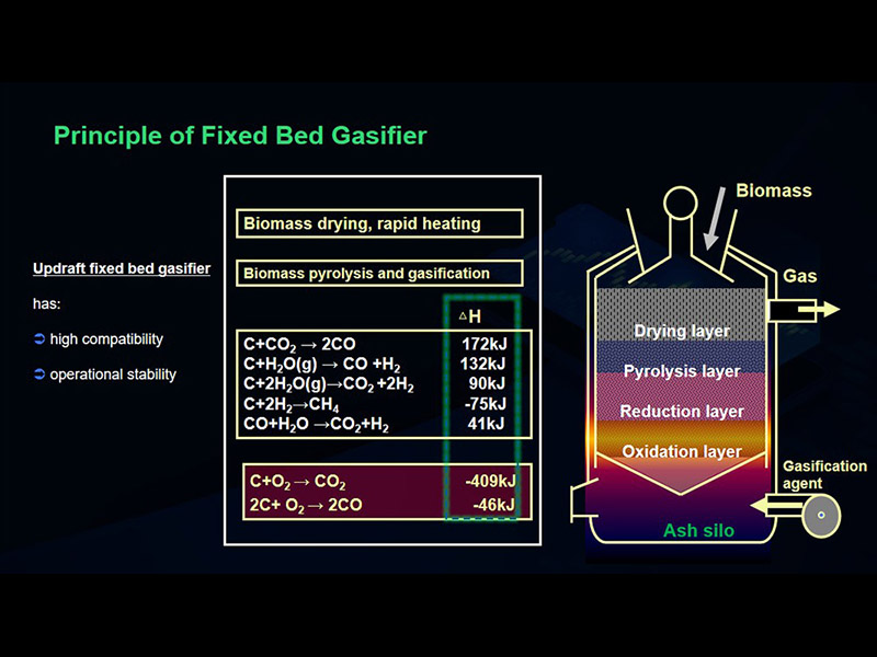 El gasificador de biomasa GeneralFlame compensa las deficiencias de los gasificadores tradicionales de lecho fijo y de lecho fluidizado adoptando la tecnología de gasificación de cámara de doble reacción, que resuelve el problema de la coquización con combustible de biomasa. Puede utilizar cualquier tipo de combustible de biomasa, como diversos combustibles de paja, así como residuos y residuos sólidos orgánicos como combustible.
