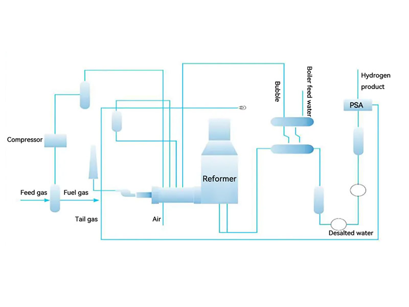 SMR es un proceso químico utilizado para producir hidrógeno a gran escala en la industria de fabricación de gas. El proceso implica dos reacciones químicas que finalmente convierten el agua y el metano (generalmente en forma de gas natural) en hidrógeno puro y dióxido de carbono. Luego, el hidrógeno se purifica aún más según los requisitos de pureza especificados por el cliente (hasta 99,999 %) para su uso en generación de energía, refinación de petróleo, innumerables procesos químicos y muchas otras aplicaciones industriales.